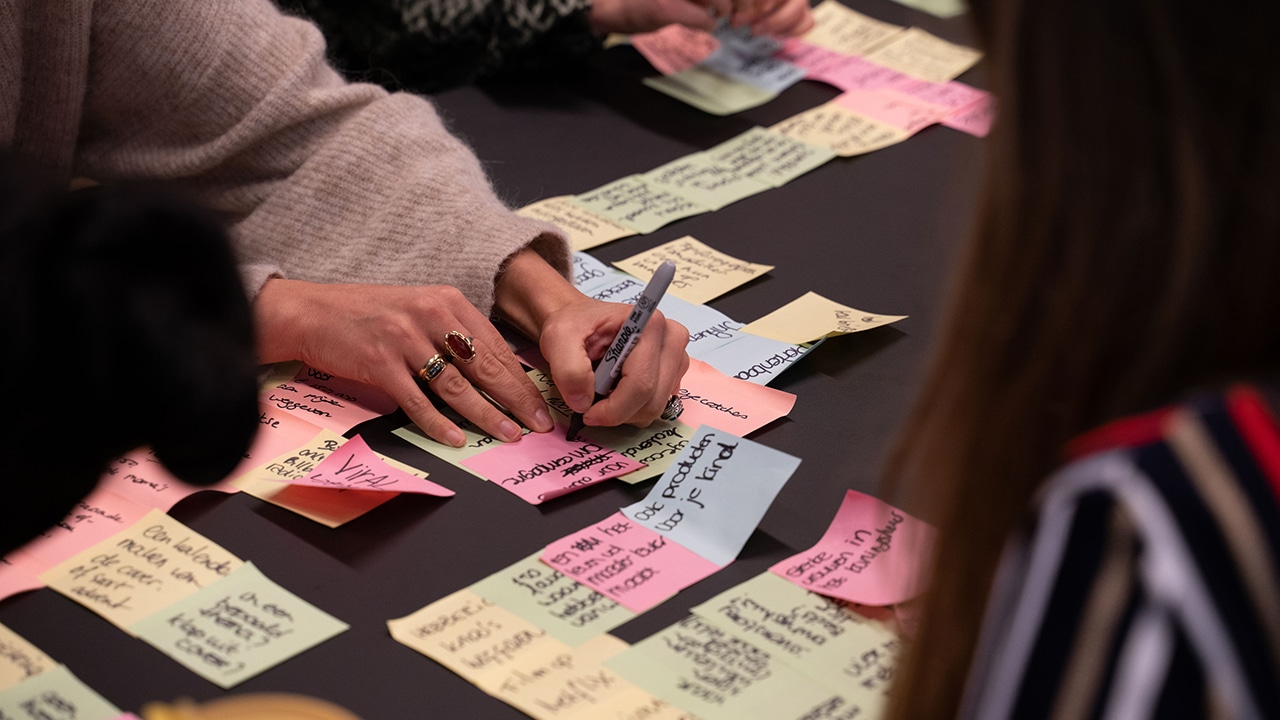 Storytelling komt vaak aan het einde van een brainstorm om de hoek kijken. Na uren discussiëren, schetsen en noteren begint de fase waarin de juweeltjes worden gekozen en verder worden uitgewerkt. In plaats van ideeën als abstracte concepten achter te laten, worden ze tot leven gebracht door middel van verhalen.