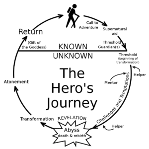 Deze structuur vormt de basis voor een bekende vorm van storytelling: de ‘’Hero’s Journey’’. In dit verhaal onderneemt de hoofdpersoon een uitdagende reis om ‘het beloofde land’ te bereiken. Deze reis bestaat uit verschillende fases en obstakels die de hoofdpersoon moet overwinnen om bij dit ‘beloofde land’ te komen. Het begint meestal met de roeping van de held, waarin hij of zij wordt uitgenodigd om op avontuur te gaan. Vervolgens wo